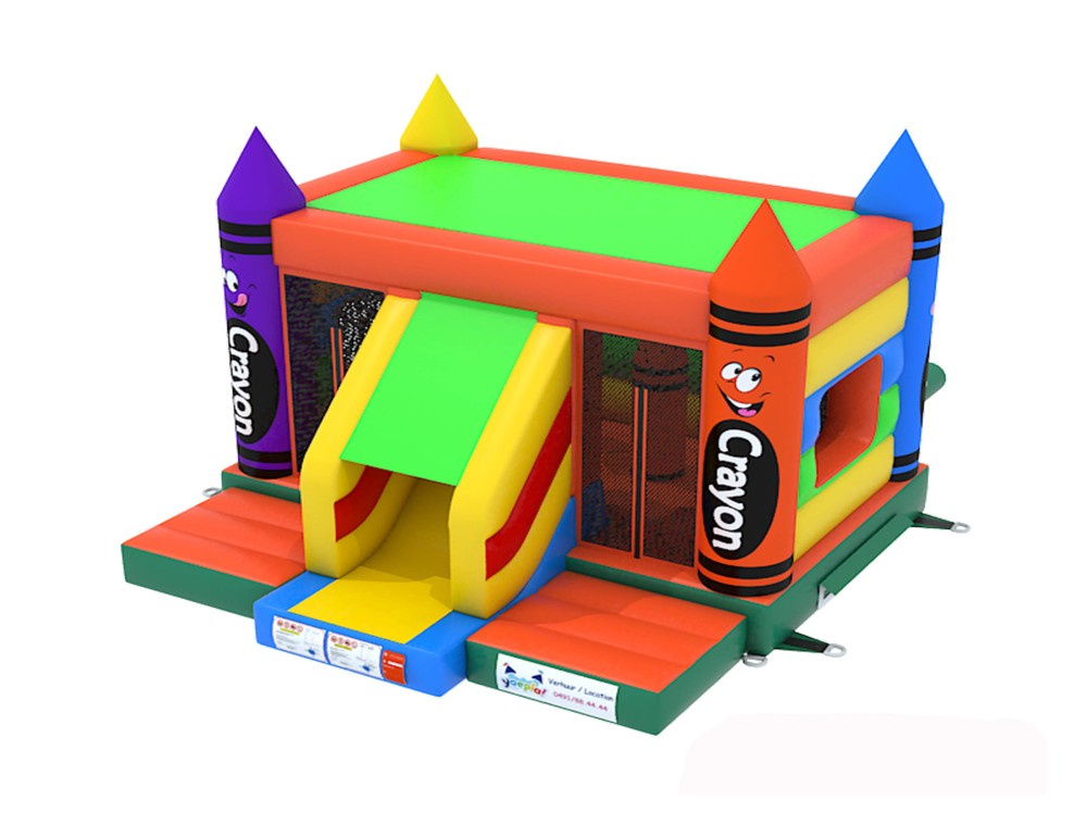 Dit compacte springkasteel is speciaal ontworpen om zelfs op de kleinste ruimtes voor uren speelplezier te zorgen. Het vrolijke ontwerp trekt meteen de aandacht met zijn levendige kleuren en unieke details. Wat dit springkasteel echt zo bijzonder maakt is zijn afneembare dak, deze zorgt voor lichte bescherming op de warmste dagen en beschermt tegen lichte regen. Naast het springgedeelte beschikt dit mini springkasteel over een kleine glijbaantje voor nog meer actie en spannig. De leuke obstakels in de vorm van puntige potloden dagen de kinderen uit om eroverheen te klimmen of tussendoor te springen. Of het nu regent of zonnig is, dit mini springkasteel biedt altijd een geweldige plek voor kinderen om te springen, glijden en spelen